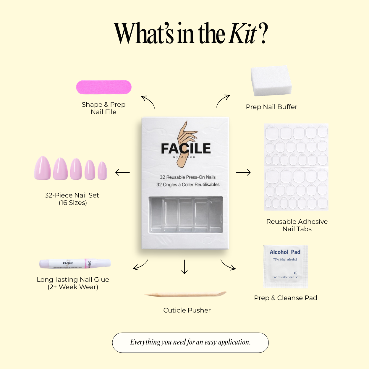 I received so many compliments on these nails and they lasted me a very long time with just the nail tabs. Also, now that the packs come with 32 nails, the fit is soo much better. Facile nails is the best for high quality press ons and I can’t wait to add more to my collection!